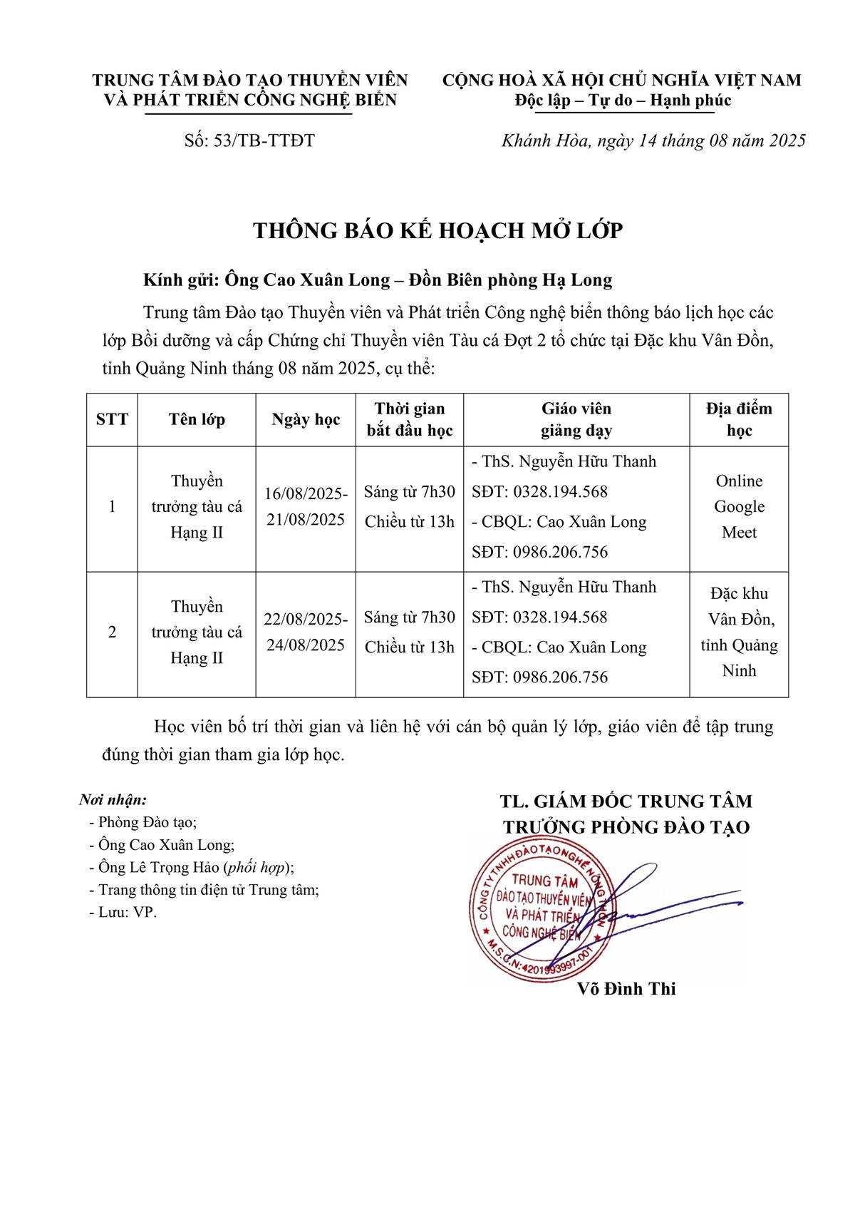 Thông báo - Kế hoạch Đào tạo tại Đặc khu Vân Đồn, tỉnh Quảng Ninh Đợt 2 tháng 08 năm 2025