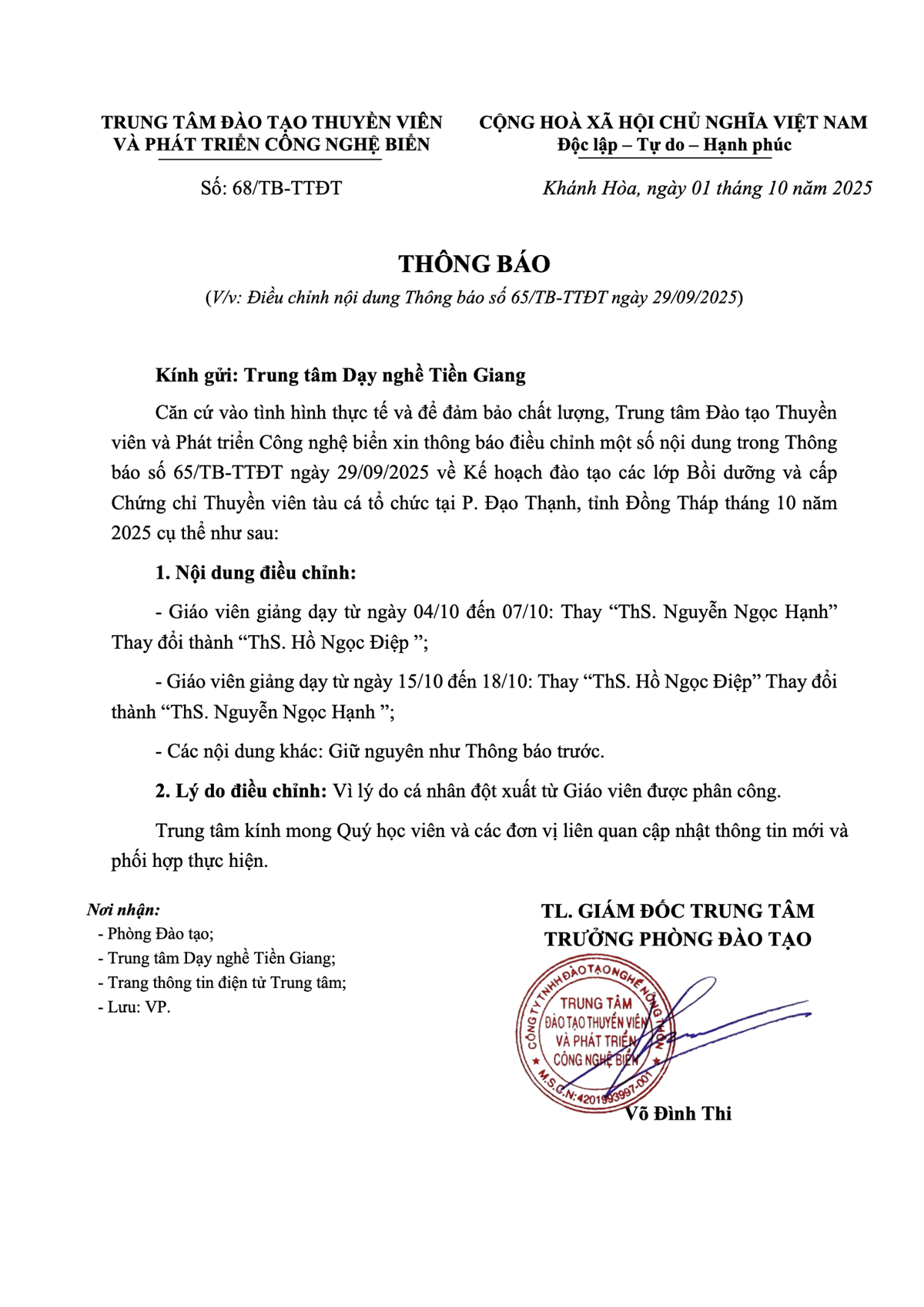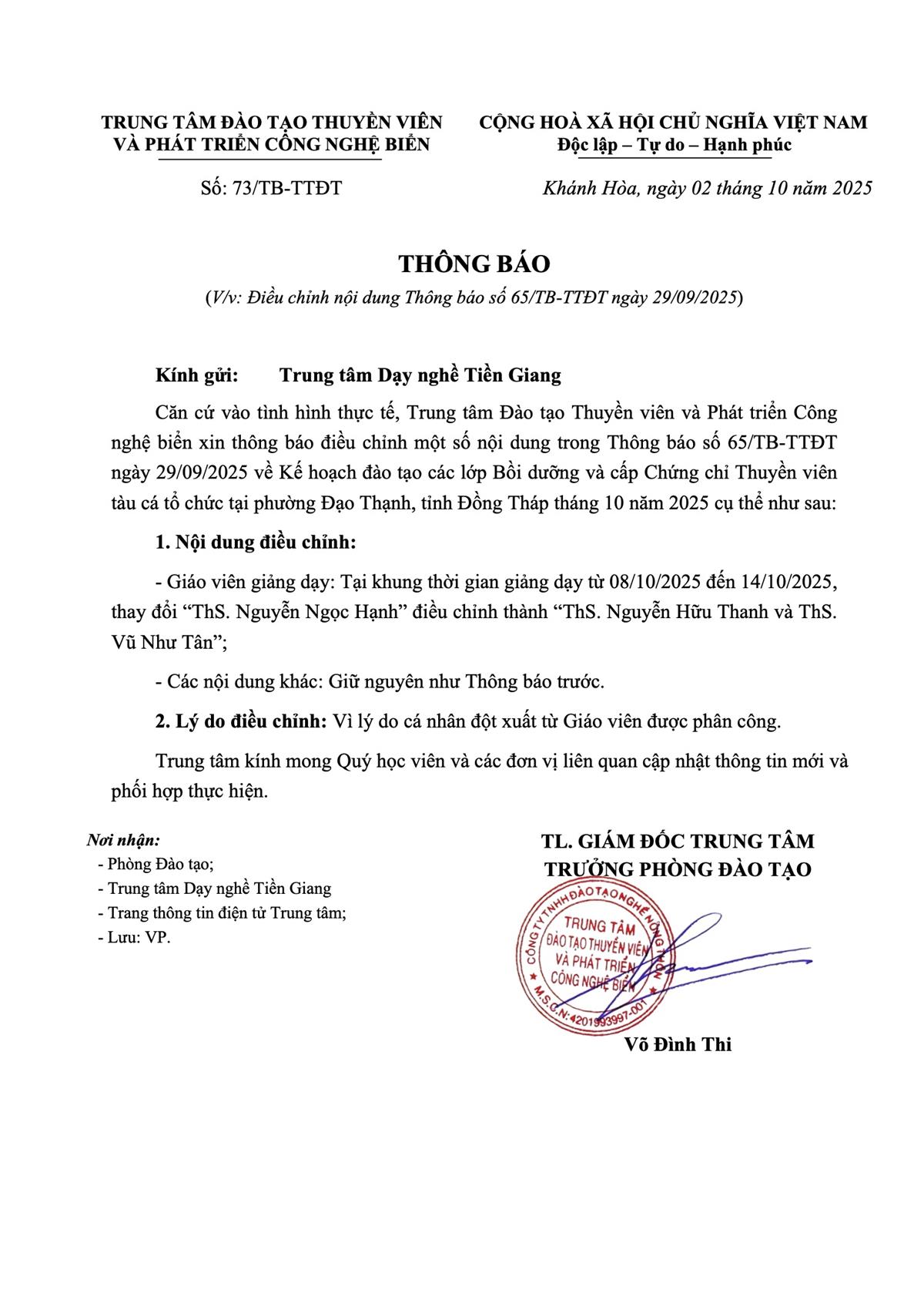 Thông báo - Kế hoạch Đào tạo tại P. Đạo Thạnh, tỉnh Đồng Tháp tháng 10 năm 2025