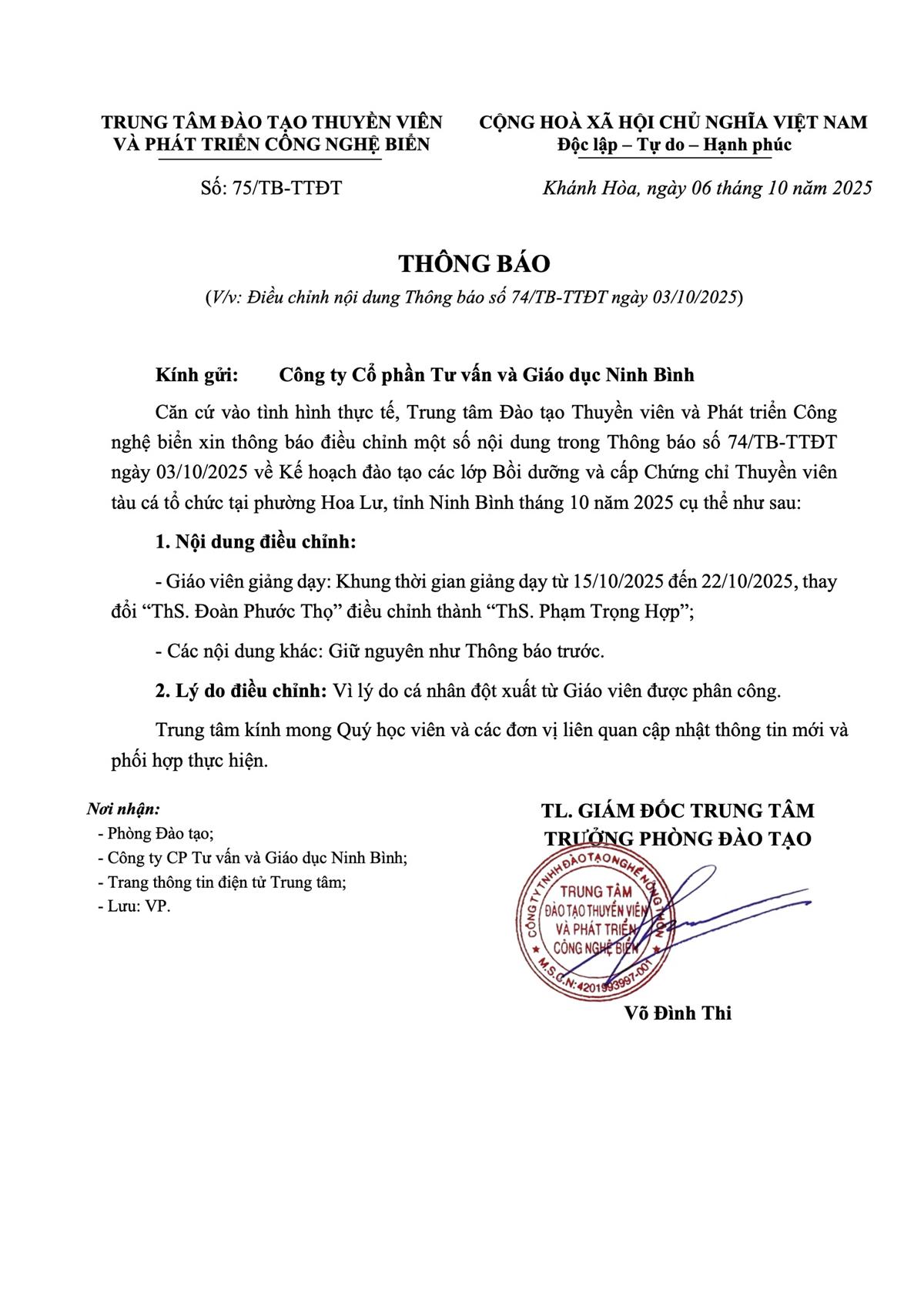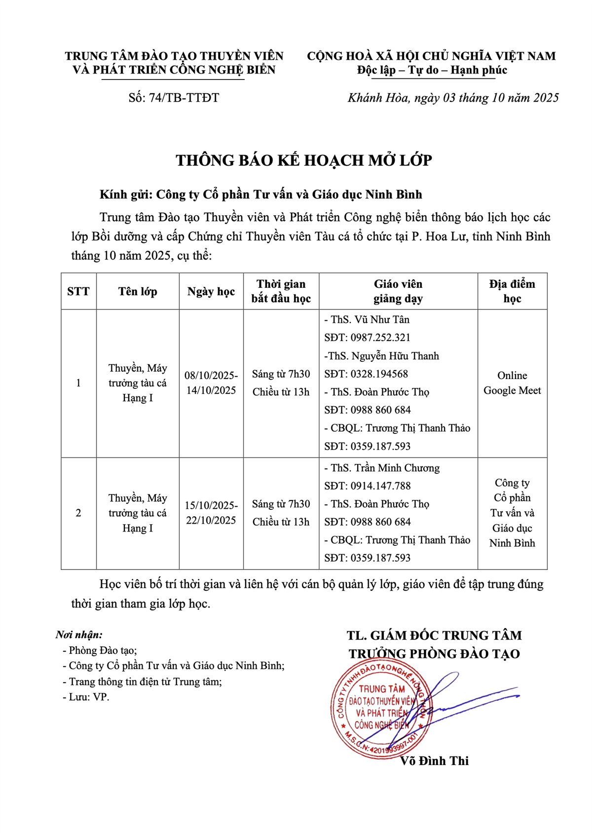 Thông báo - Kế hoạch Đào tạo tại P. Hoa Lư, tỉnh Ninh Bình tháng 10 năm 2025
