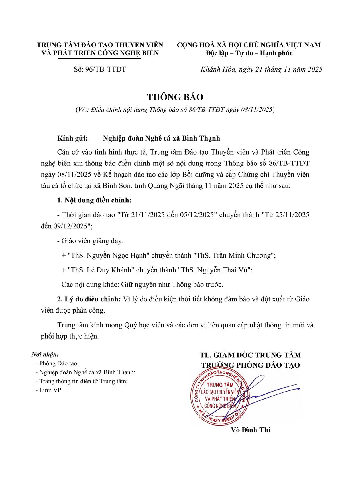 Thông báo - Kế hoạch Đào tạo tại xã Bình Sơn, tỉnh Quảng Ngãi tháng 11 năm 2025